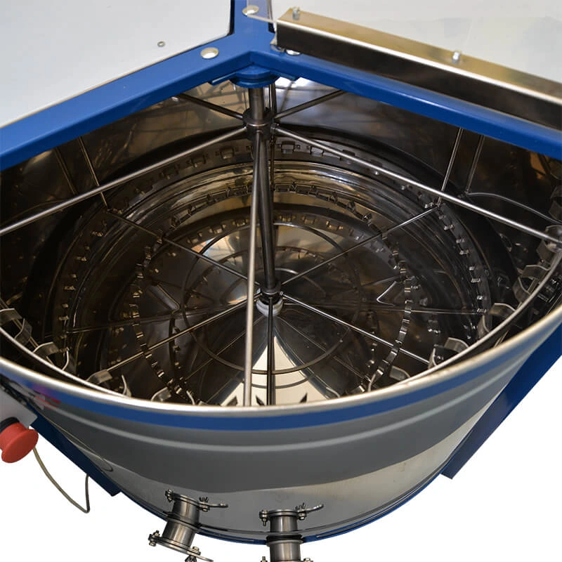 Pogon radijalne centrifuge je elektro motor sa pogonom na 12/220v što znači da je centrifugu ili vrcaljku moguće pokrenuti i kod kuće i na terenu uz pomoć akumulatora, motor snage 150w sa maksimalnim brojem obrtaja od 280 što se reguliše uz pomoć potenciometra. Okretanje centrifuge je naravno moguće u oba smera.